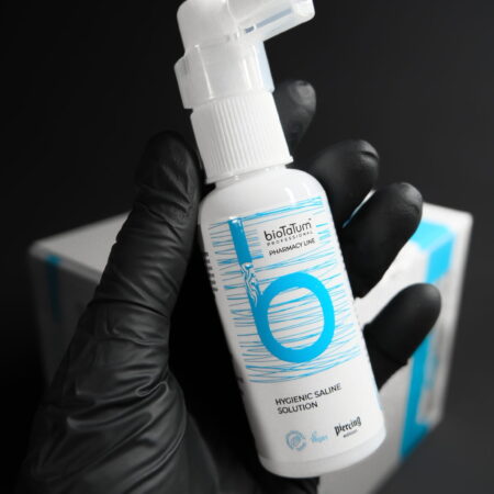 Hygienic Saline Solution for piercing care is a safe piercing care product for the first days of piercing.
