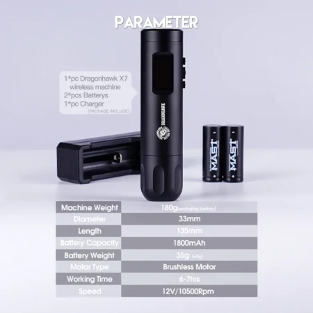 Dragonhawk X7 Wireless Tattoo Machine