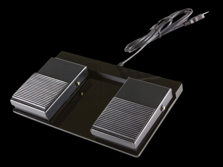 The second version of the USB foot switch for performing keyboard and mouse functions. The mechanical switch have been replaced by an optical version. The frictional noise of the housing has been largely reduced by means of noise-absorbing rubbers. Furthermore, compared to the previous model, a 3 mm shorter stop ensures that the USB Foot Switch II can be operated with little force. The USB foot switches are available with one, two and three buttons, which can be freely assigned with the operating software.