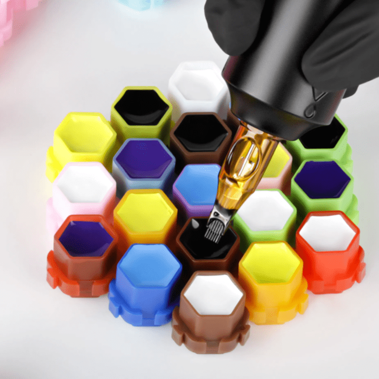 Linetion Honeycomb Tattoo Ink Cups are made from medical grade safe plastic, shaped like a honeycomb or hive. They click together perfectly into whatever design your heart desires. The Honeycomb cups come in a beautiful draw-string bag of 200 pcs in various colours, so you can mix and match. The raised logo on the bottom keeps…