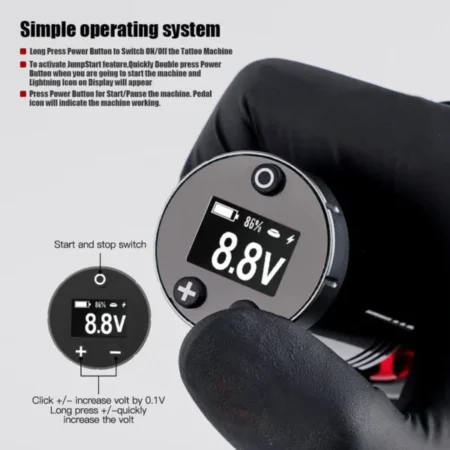 Arenahawk Wireless Power Battery on uus juhtmevaba toiteallikas pen-tüüpi tätoveerimismasinatele. Suure mahutavusega aku (1800 mAh) tagab kuni 10 tundi töötamist ilma katkestusteta. Mugav ühe nupu juhtimine ja start-up funktsioon muudavad selle ideaalseks nii algajatele kui ka kogenud kunstnikele.