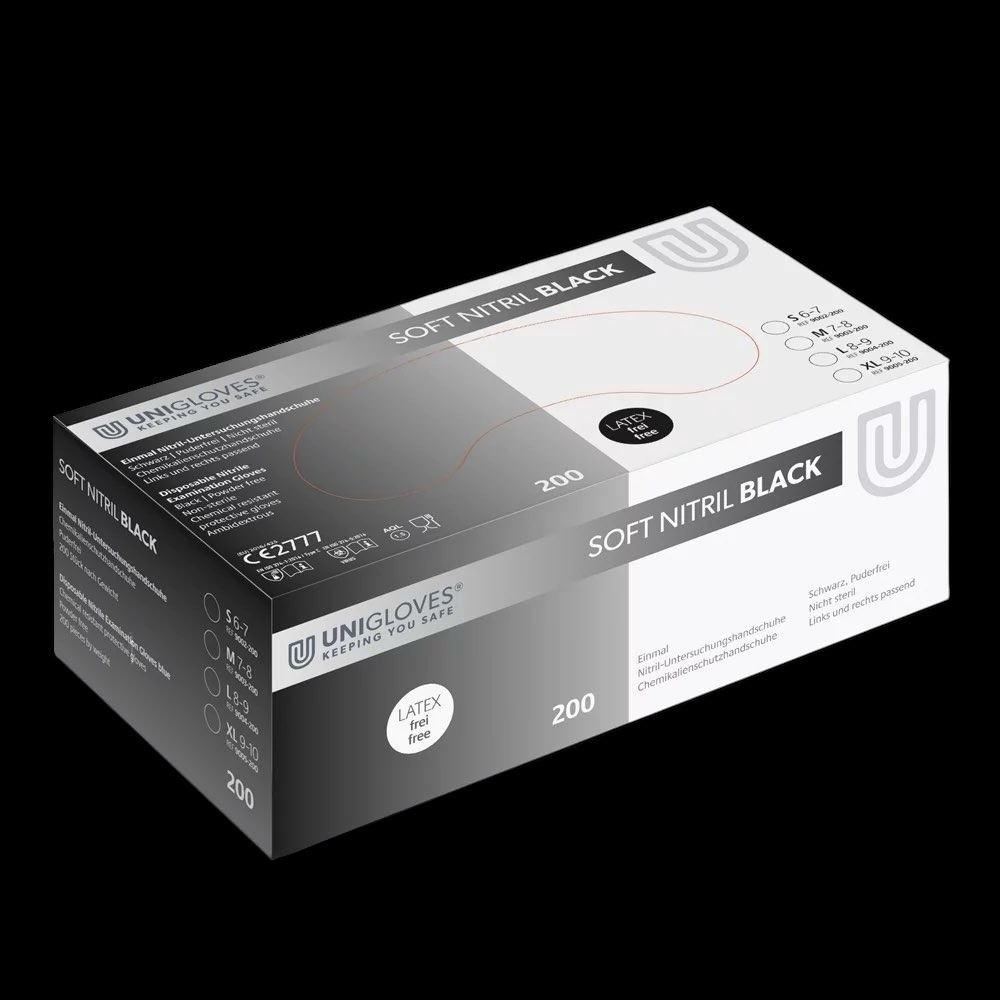UNIGLOVES Soft Nitrile Gloves BLACK 200 tk