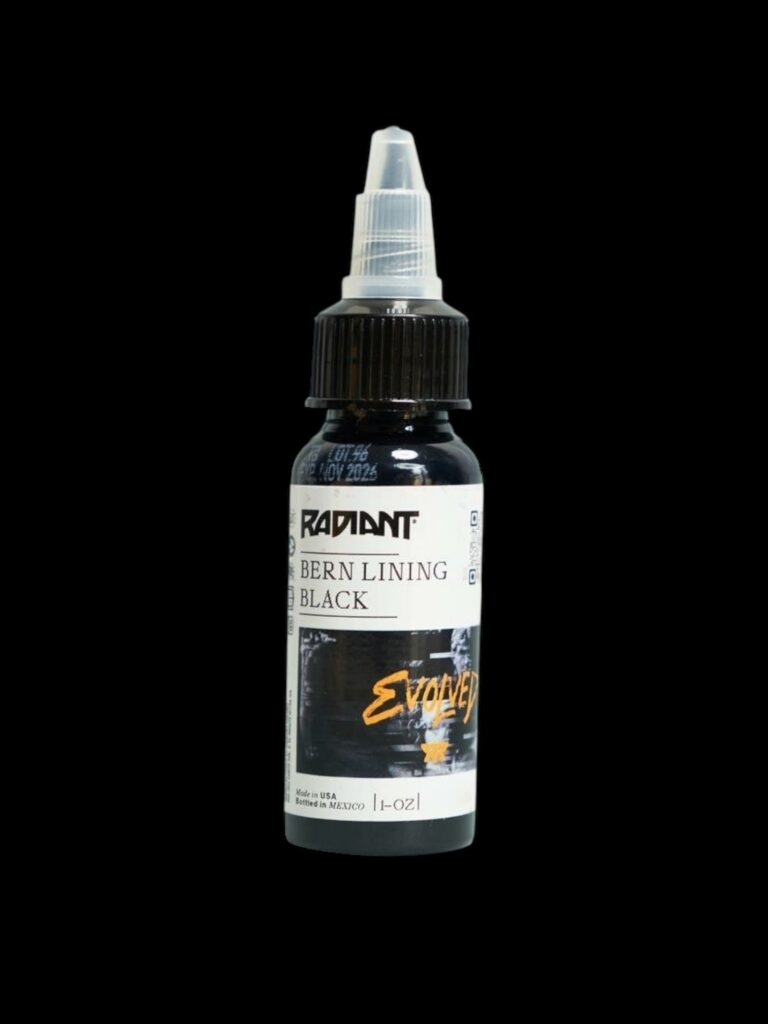 Radiant Evolved Bern Lining Black is a deep black tattoo ink specifically developed for clean and consistent linework. Its bold, stable formula ensures sharp outlines that stay crisp over time. This next-generation vegan ink is sterilized and lab-tested for safety and performance.