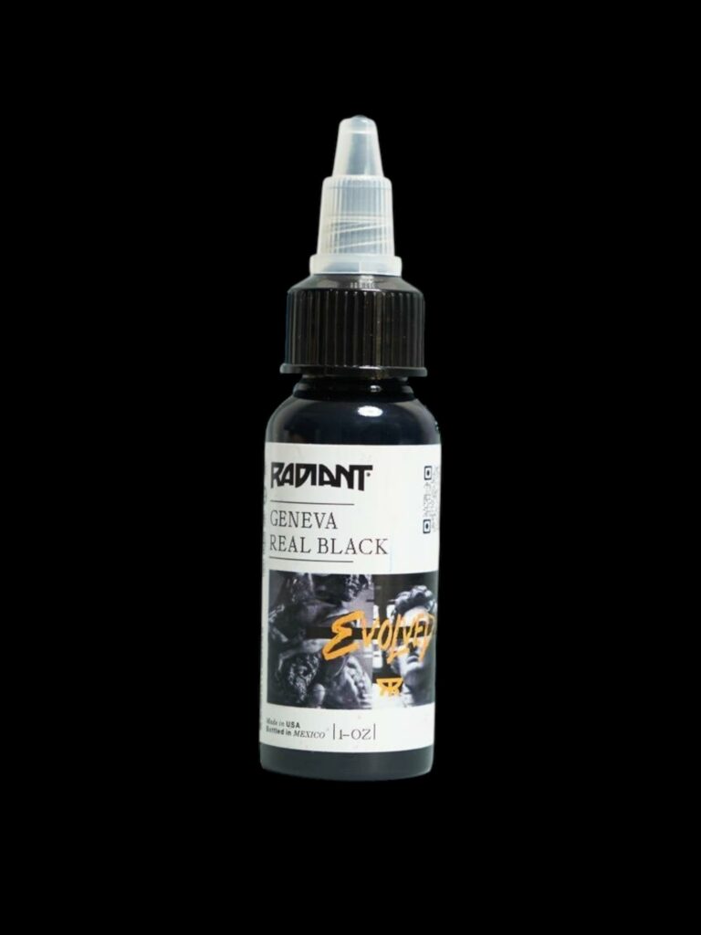 Radiant Evolved Geneva Real Black on mitmekülgne ja tugeva pigmendiga must tätoveerimistint, mis sobib nii täitmiseks kui ka kontuuride tegemiseks. Selle sügav toon ja püsivus muudavad selle ideaalseks valikuks neile, kes otsivad maksimaalset kontrasti ja vastupidavust. Vegan koostis on steriliseeritud ja testitud nahaohutuse tagamiseks.